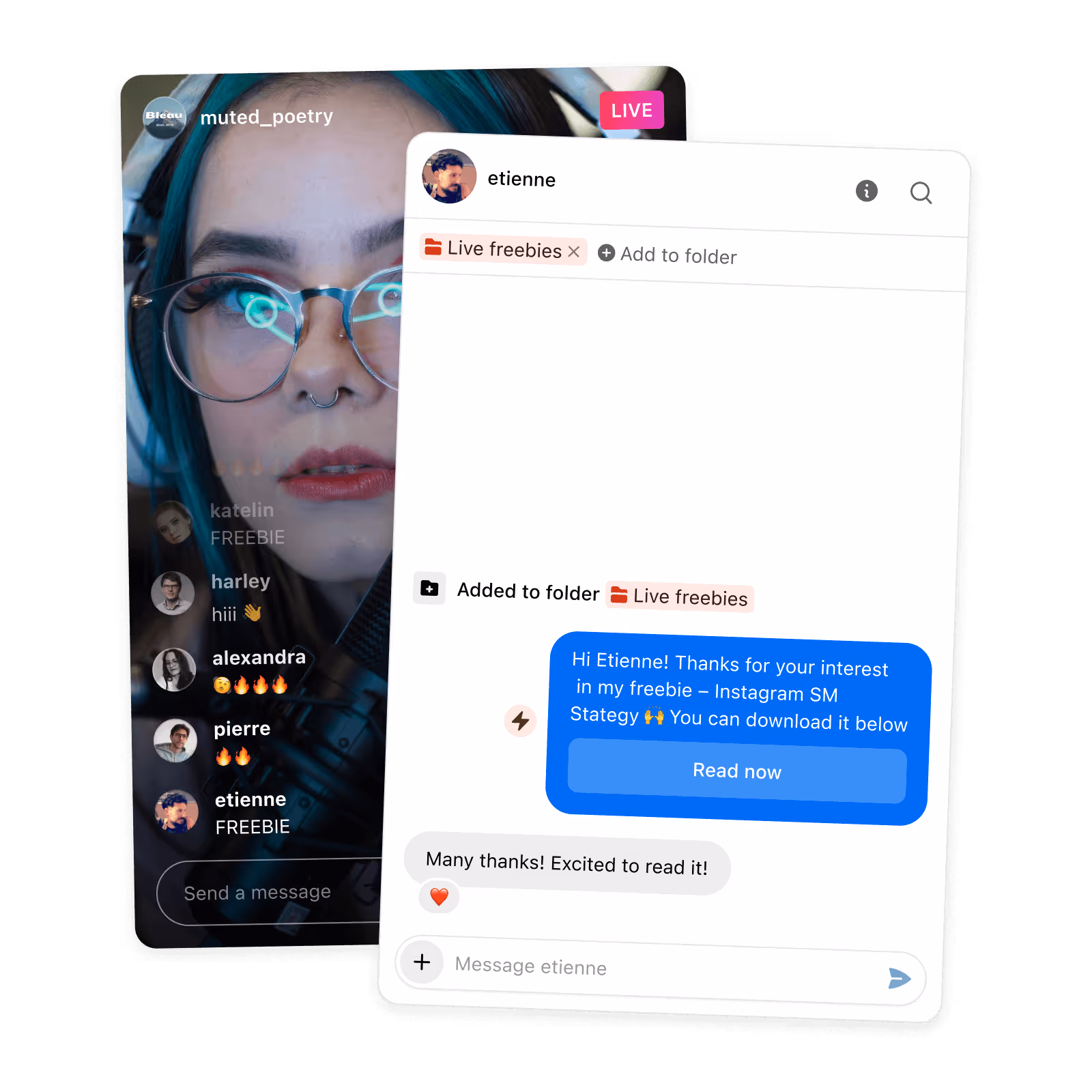 Boost Instagram conversions by turning commenters, story repliers and inbound DMs into customers.