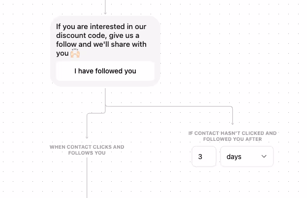After their reply, the automation uses Inrō’s Follower Condition block to verify if they’ve followed your account: