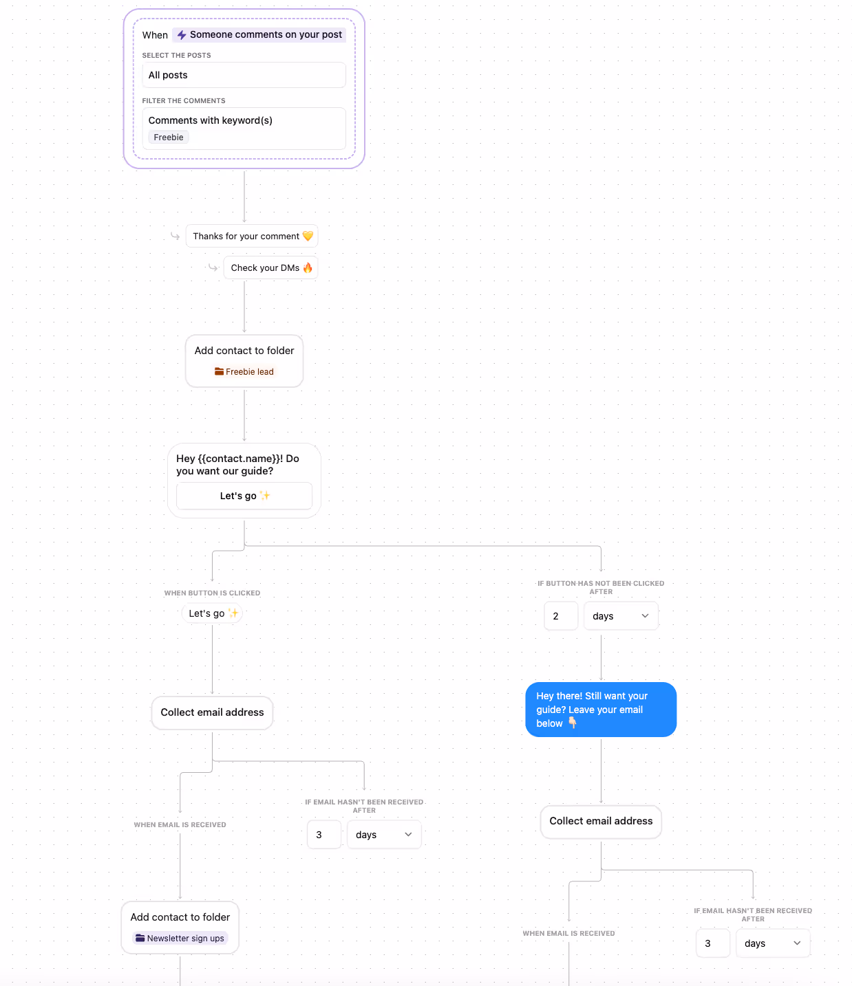 Without an automated flow, it’s easy to lose track of interested users once the post’s momentum fades.