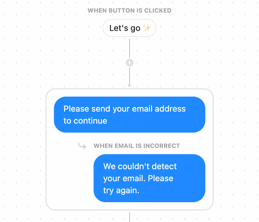 Your next DM contains an action(“Share Your Email 📩”). This step will automatically ask and collect users emails. It will also automatically follow up in case a user doesn't send a valid email address.