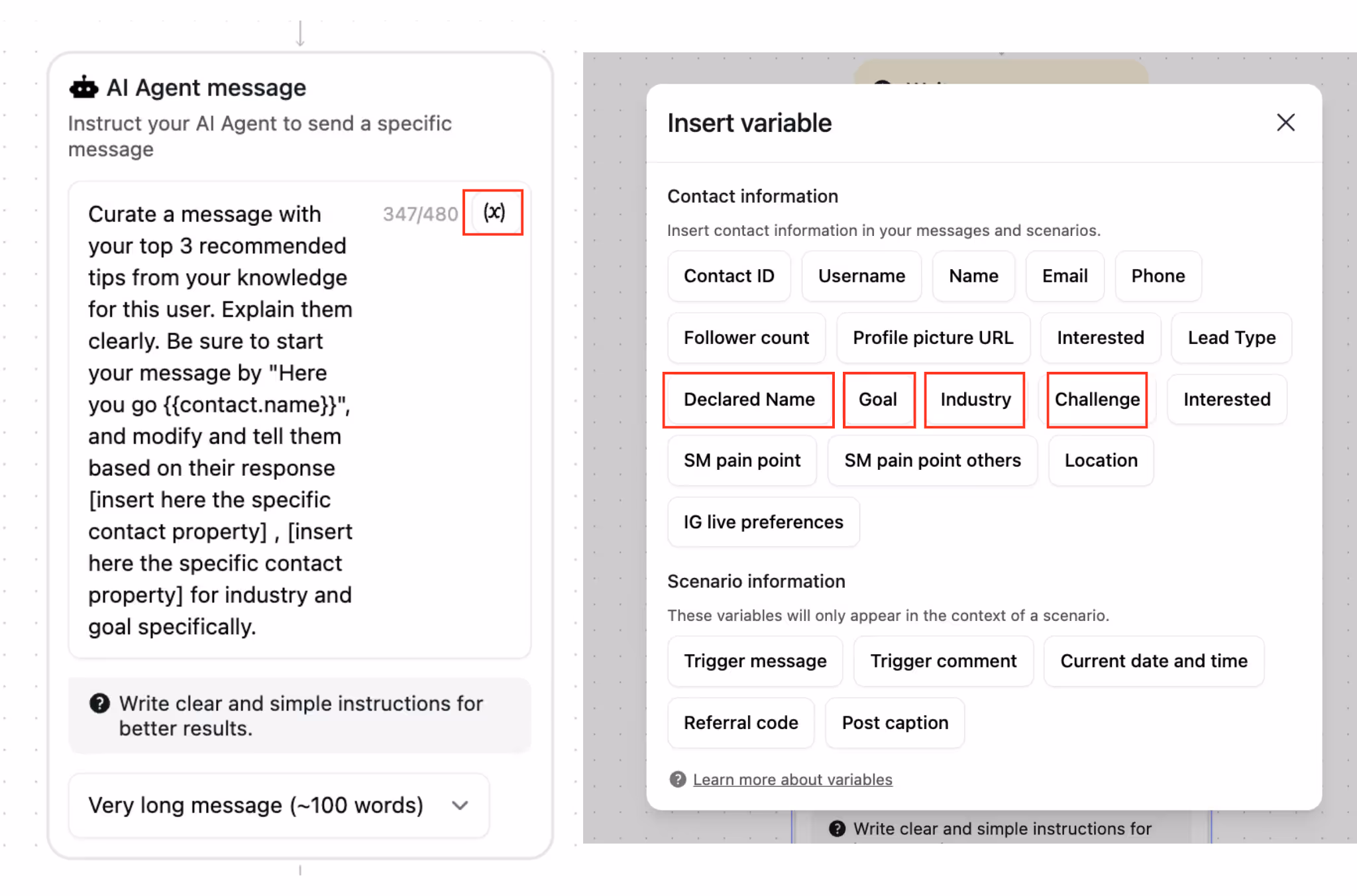 Pro tip: You can also use the scenario trigger as an Icebreaker. This allows new leads who visit your profile to start a conversation by simply selecting the Icebreaker in your DM chat, automatically triggering your flow.