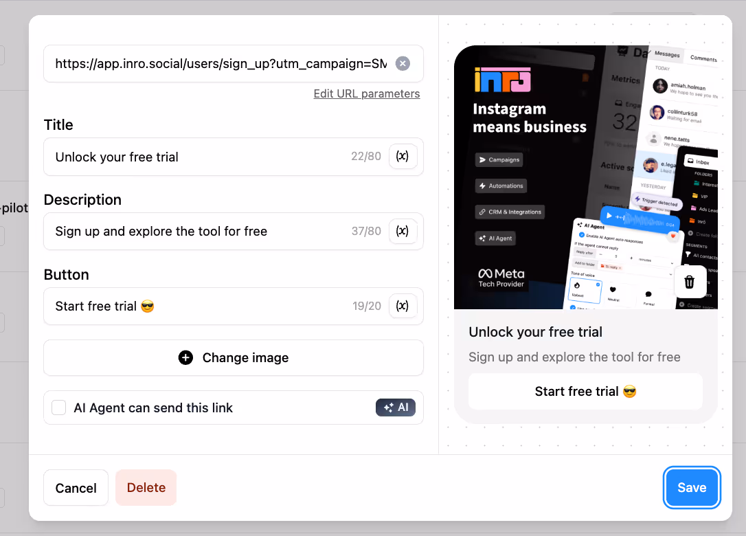 A Conversion Link is a smart, trackable link that you can send inside your automated DMs. Unlike a plain URL, it comes with: