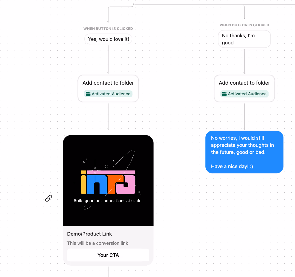 Yes — Inrō automates audience selection, DM sending, link delivery, and follow-up messages.