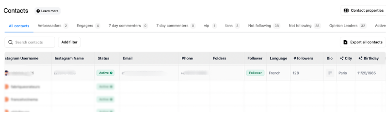 Every contact who passes through a qualification flow is stored in Inrō's Smart Inbox CRM with their collected properties and folder assignment. This turns the inbox from a message queue into a segmented lead database.