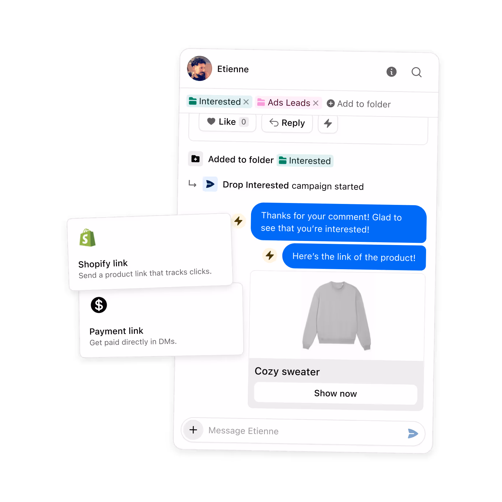 Use Inrō to sync every lead to your tools, directly from Instagram DMs.